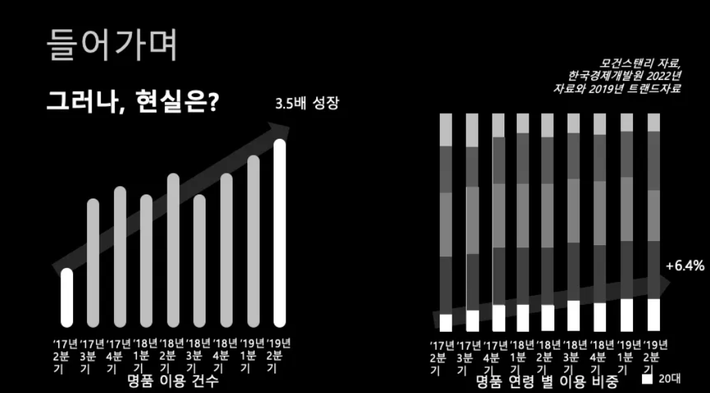 매년 20-30대의 명품이용 건수는 기하급수적으로 늘어나고있으며 최근엔 미국와 중국을 넘었다.