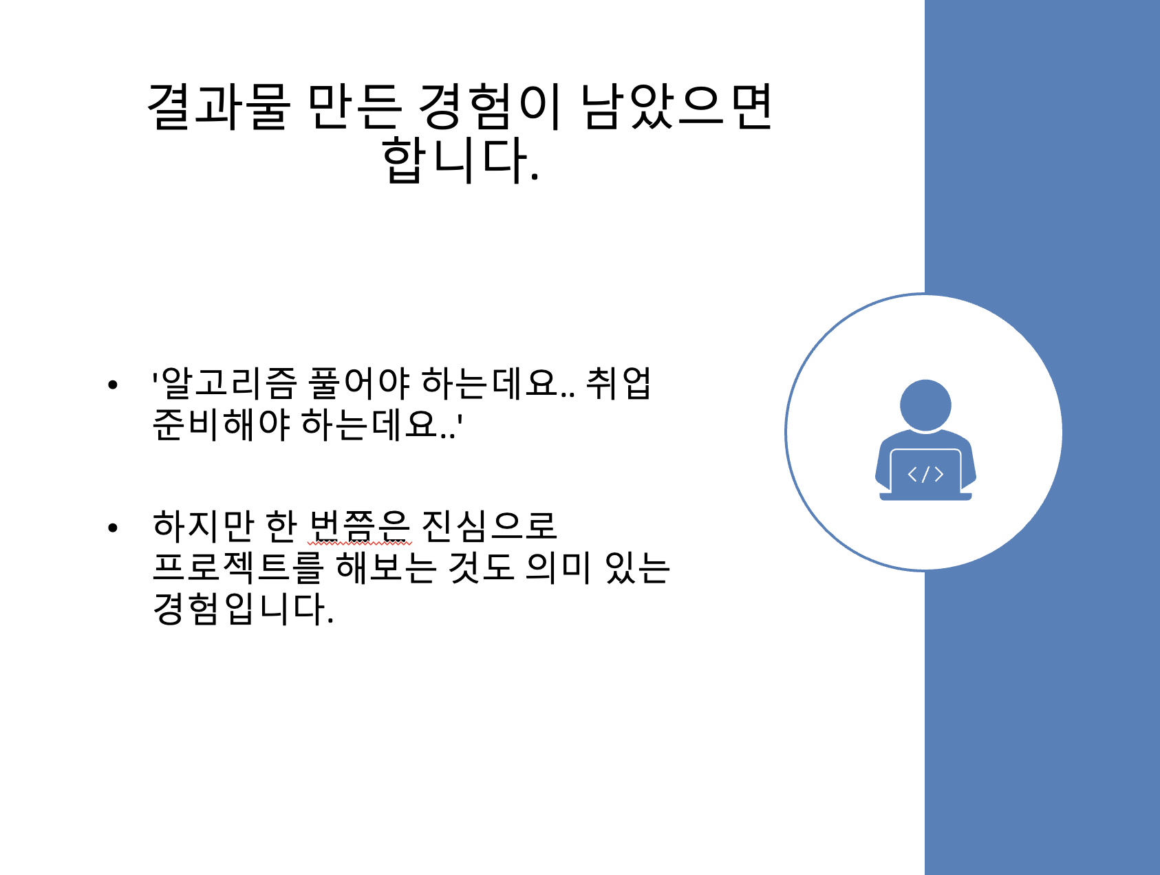 부족한 프로젝트였을수도 있으나, 우리에겐 충분했고 과분했다 싶습니다.