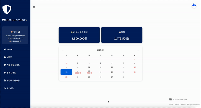 시작화면 → 회원가입 → 로그인 -> 목표 금액 설정