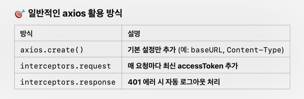 🔹 서론웹 애플리케이션에서 로그인 및 인증 보안 강화는 필수입니다. 저는 프로젝트 의 프론트엔드에서 로그인, 토큰 인증, 사용자 정보 보호, 접근 제어 등의 보안 과정을 설계하면서 보다 안전한 사용자 경험을 제공할 수 있도록 개선했습니다. 이번 포스팅에서는 우리가 적용한 보안 설계 과정에 대해 정리합니다. 1️⃣ JWT 기반 인증 시스템 구축✅ 로그인 시 토큰 발급 및 저장사용자가 로그인하면 JWT(JSON Web Token) 를 발급하여 인증을 관리합니다.accessToken과 refreshToken을 서버에서 응답받아 클라이언트(LocalStorage)에 저장합니다.당연히 이 과정은 백엔드와 소통으로서 정했던 방식입니다.로그인 함수 로직입니다.const handleLogin = async (e) ..